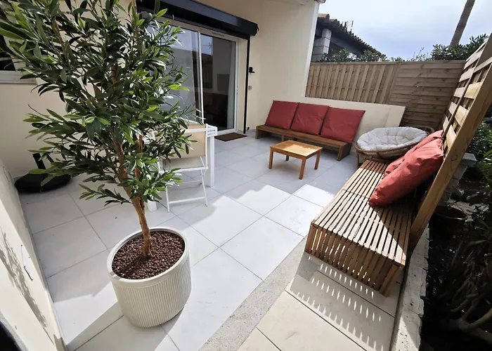 В распоряжении гостей оборудованная кухня с кофеваркой, духовкой и кухонной утварью, где можно приготовить любимые блюда. Гости могут поужинать в ресторане L'Indigo, расположенном на расстоянии 5-минутной прогулки. Транспортные альтернативы в этом районе включают автобусную остановку Village Vacances CCAS, расположенную в 100 метрах. Если вы хотите познакомиться с окрестностями, то лучшим вариантом будет прокат велосипедов, но вы также можете отдохнуть у личного бассейнана территории. Вы можете расслабиться на террасе и полюбоваться видом на сад.
